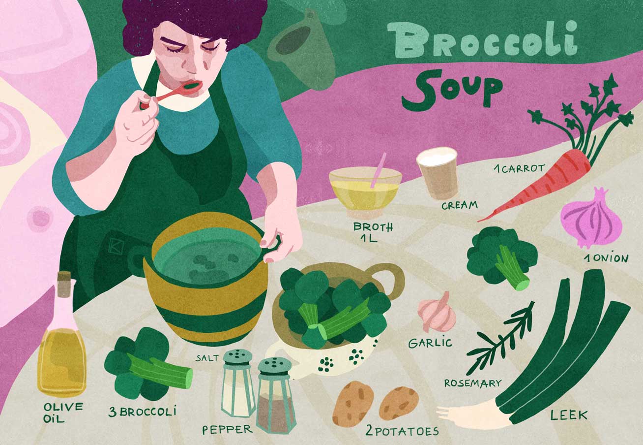 Illustrations around delicious bewerages and food.