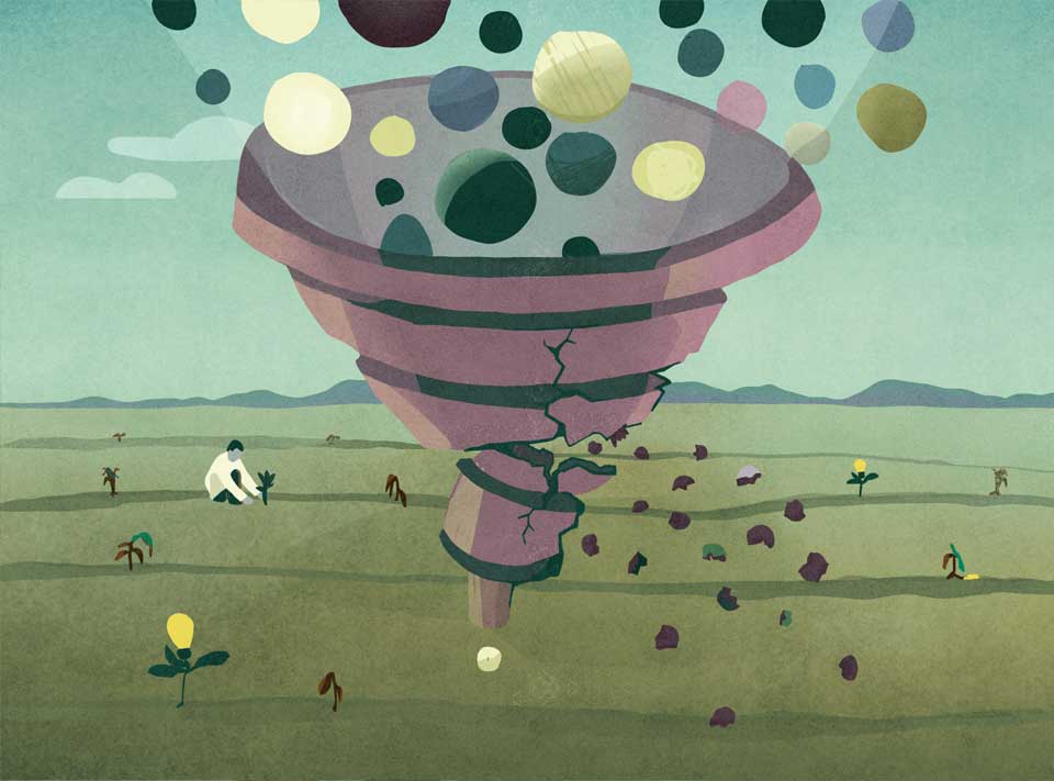 G+G Magazine /AOK addresses the topic of the Innovation Fund, which allocates billions of euros to support new healthcare models. However, the transition from pilot projects to mainstream care is often long and complex. I was commissioned to create a series of illustrations that highlight the challenges surrounding the fund.