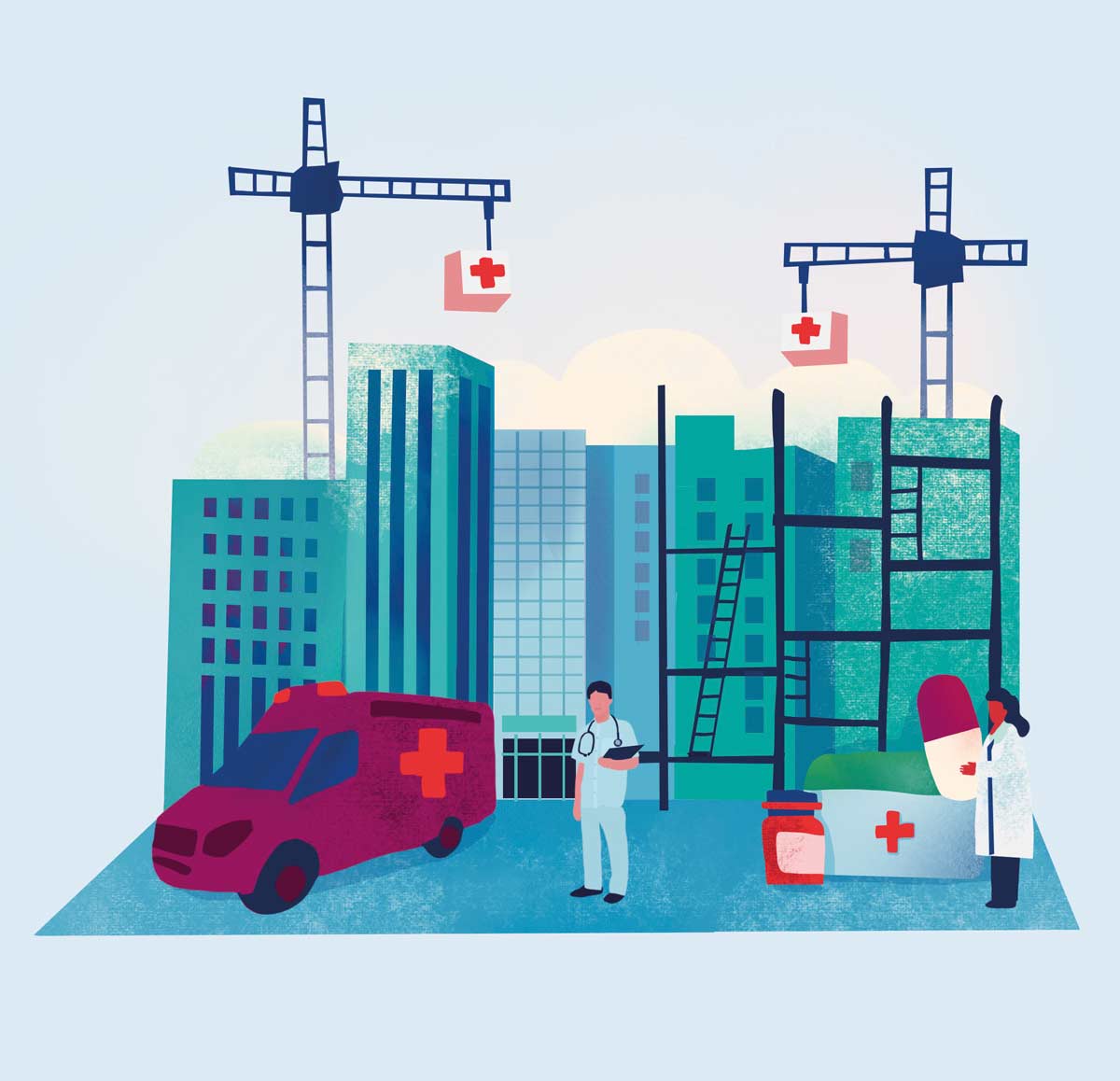 Different issues of "Ersatzkasse Magazin", that are tackling the problem of healthcare system reform in Germany , as well as growing projects for climate and health protection . I was commissioned to illustrate these topics.