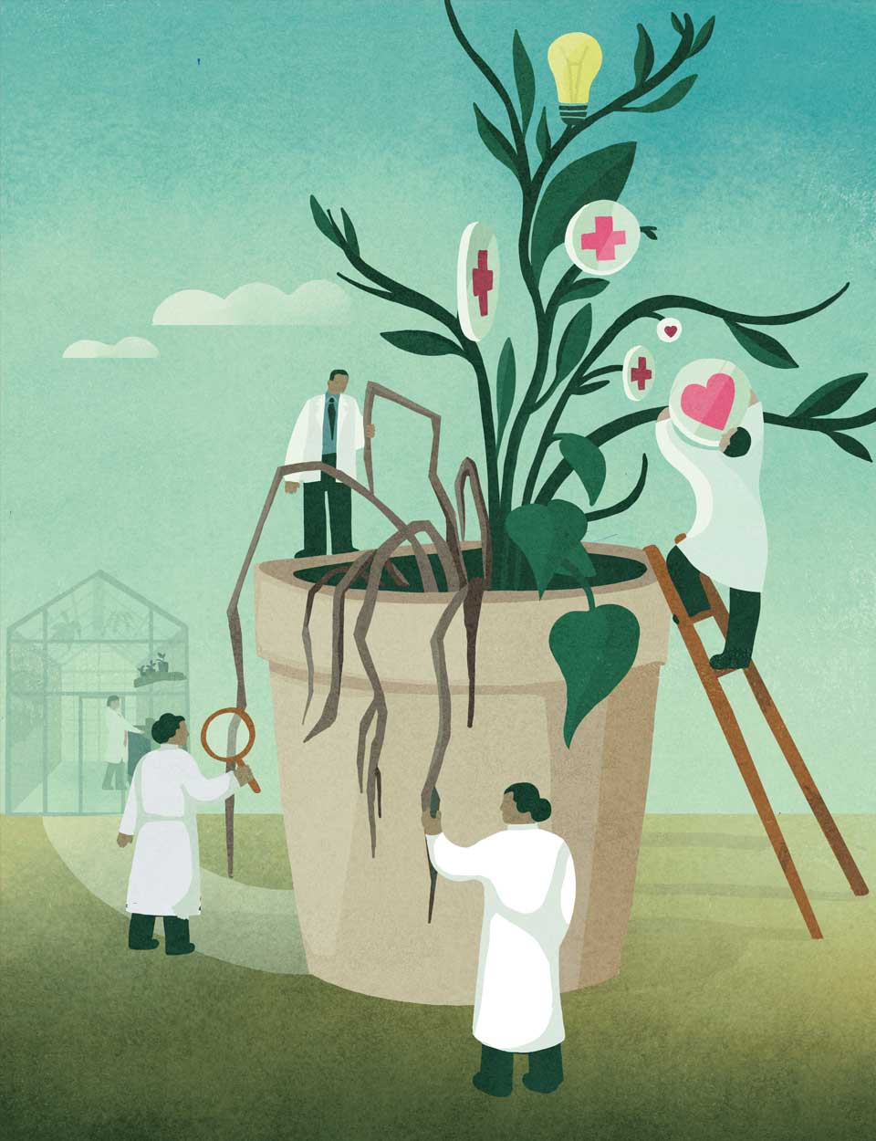 G+G Magazine /AOK addresses the topic of the Innovation Fund, which allocates billions of euros to support new healthcare models. However, the transition from pilot projects to mainstream care is often long and complex. I was commissioned to create a series of illustrations that highlight the challenges surrounding the fund.